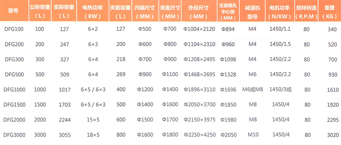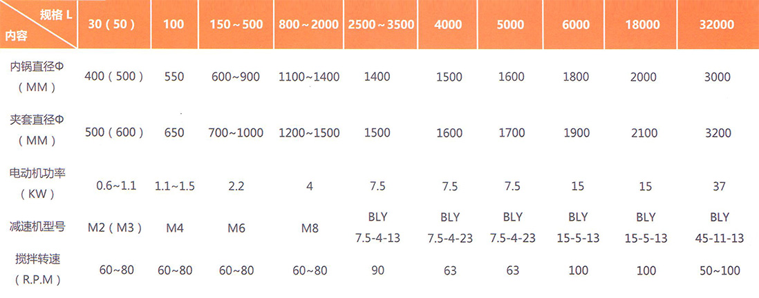 循環(huán)導熱油、蒸汽加熱反應釜品種規格、主要技術(shù)參數表